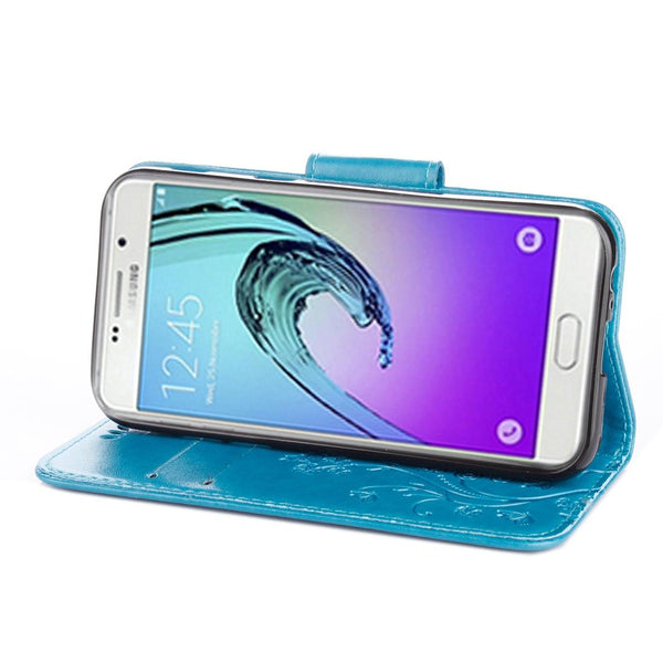 For Galaxy A3 (2017) / A320 Butterflies Love Flowers Embossing Horizontal Flip Leather Case with Holder & Card Slots & Wallet & Lanyard(Blue)