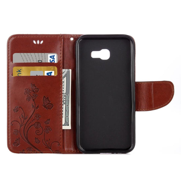 For Galaxy A5 (2017) / A520 Butterflies Love Flowers Embossing Horizontal Flip Leather Case with Holder & Card Slots & Wallet & Lanyard(Brown)