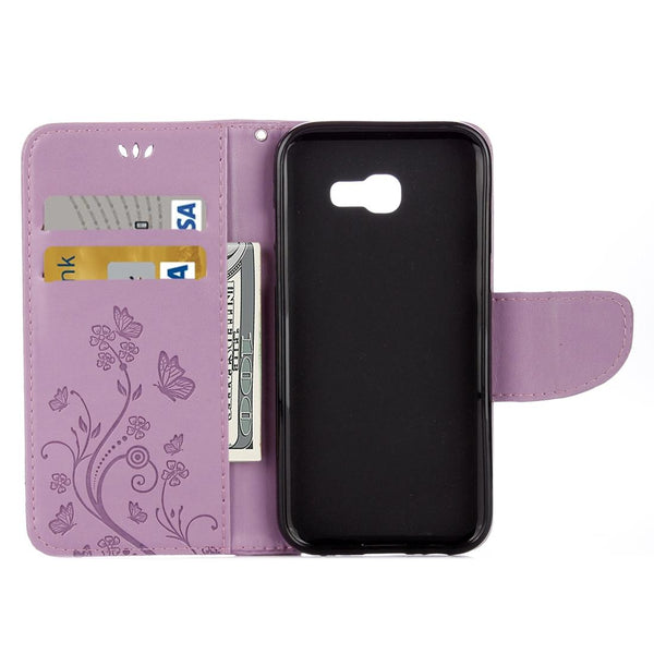 For Galaxy A5 (2017) / A520 Butterflies Love Flowers Embossing Horizontal Flip Leather Case with Holder & Card Slots & Wallet & Lanyard(Light Purple)
