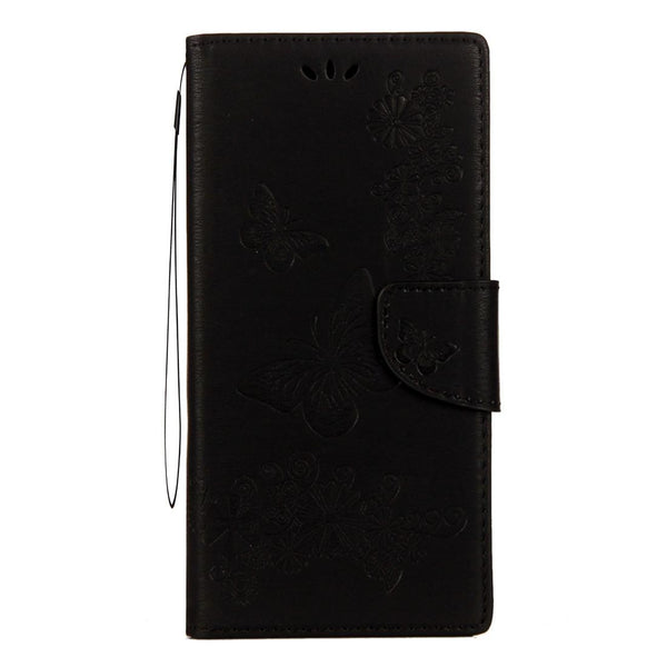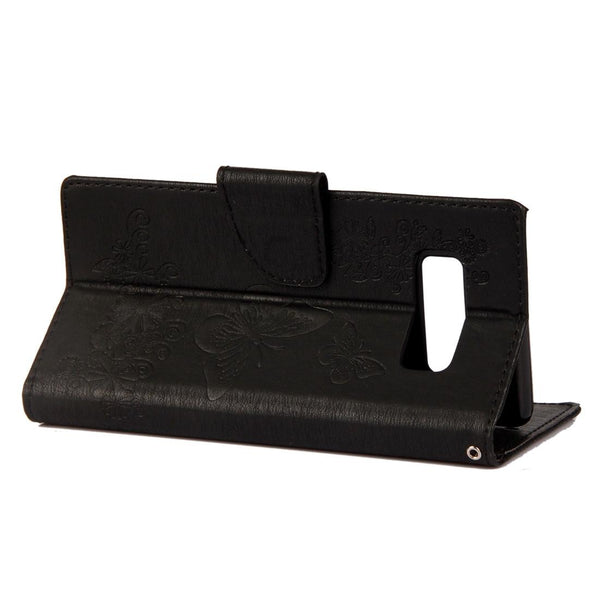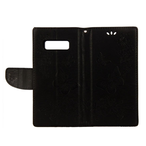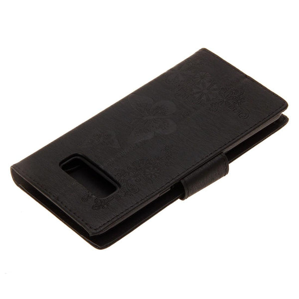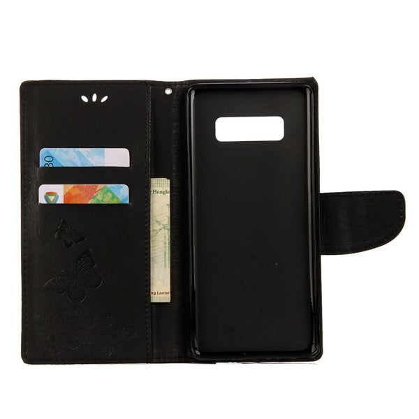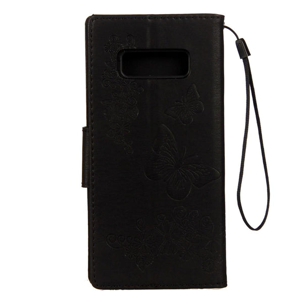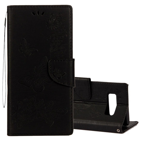 For Galaxy Note 8 Pressed Flowers Butterfly Pattern Horizontal Flip Leather Case with Holder & Card Slots & Wallet & Lanyard (Black)