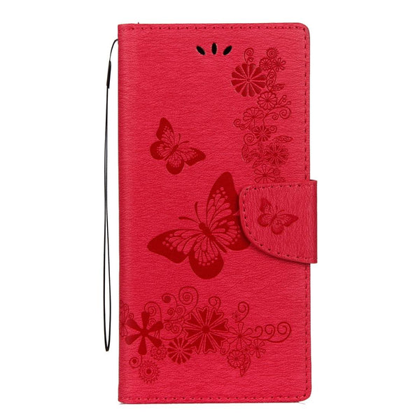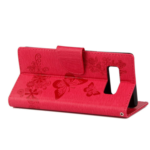 For Galaxy Note 8 Pressed Flowers Butterfly Pattern Horizontal Flip Leather Case with Holder & Card Slots & Wallet & Lanyard (Red)