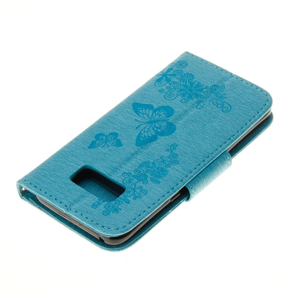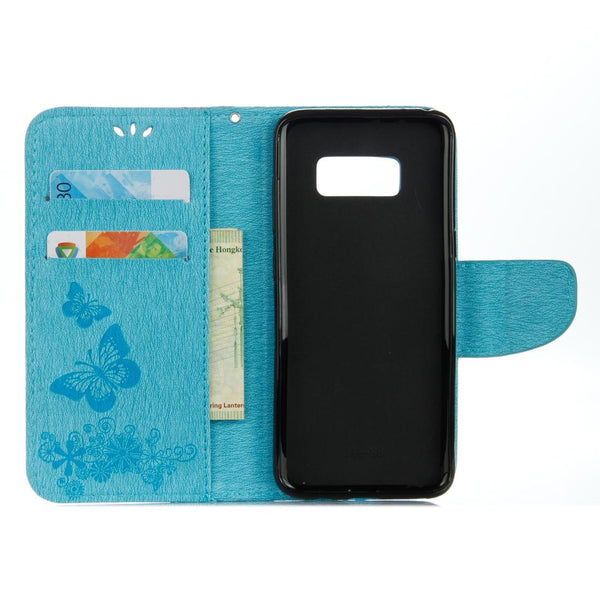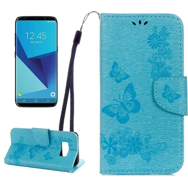 For Galaxy S8 Butterflies Embossing Horizontal Flip Leather Case with Holder & Card Slots & Wallet & Lanyard(Blue)