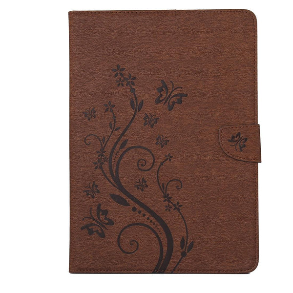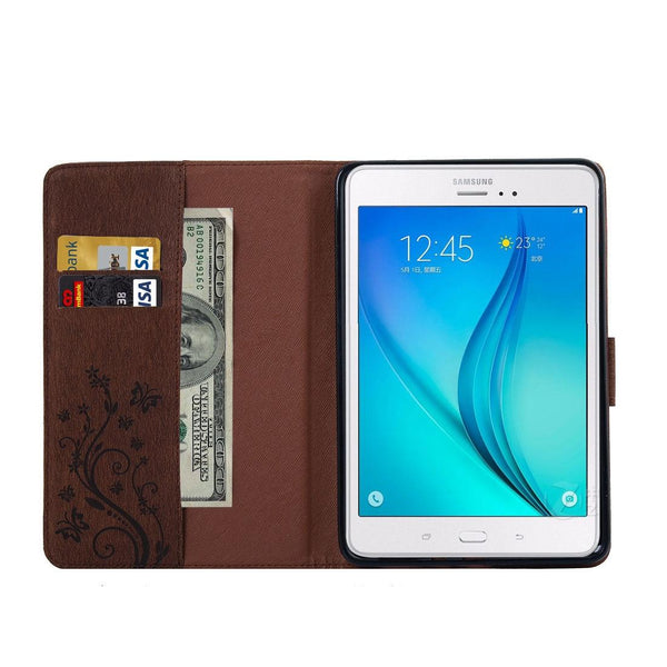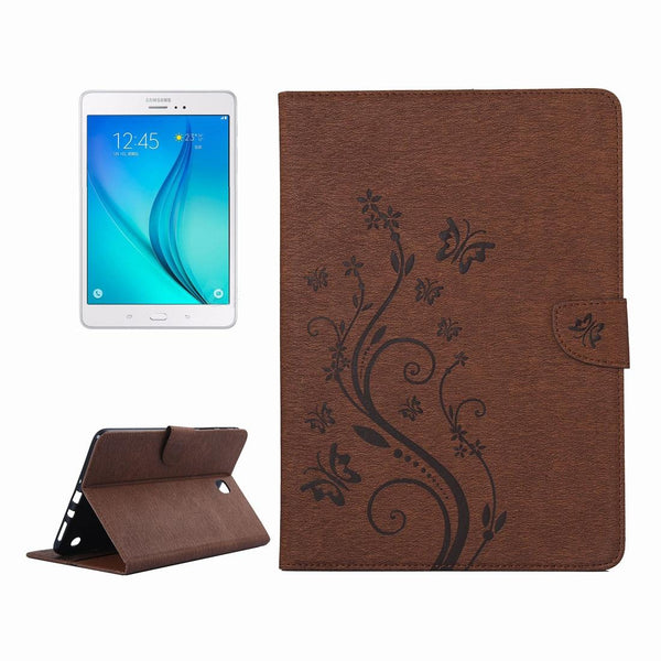 For Galaxy Tab A 8.0 / T350 Pressed Flowers Butterfly Pattern Horizontal Flip PU Leather Case with Magnetic Buckle & Holder & Card Slots & Wallet(Brown)