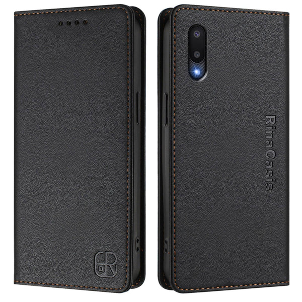 For Samsung Galaxy A02 / M02 RC01 Dual-Folded Magnetic Suction RFID Leather Phone Case(Black)