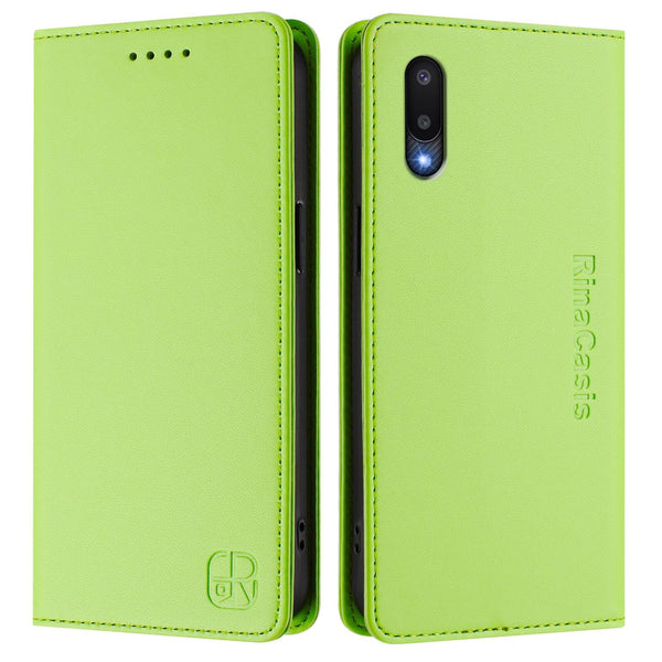 For Samsung Galaxy A02 / M02 RC01 Dual-Folded Magnetic Suction RFID Leather Phone Case(Grass Green)