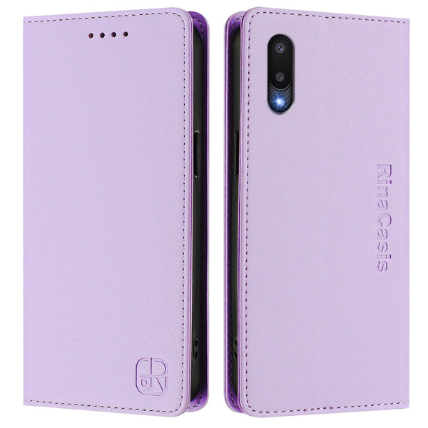 For Samsung Galaxy A02 / M02 RC01 Dual-Folded Magnetic Suction RFID Leather Phone Case(Light Purple)