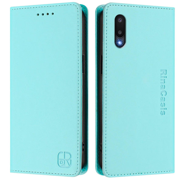 For Samsung Galaxy A02 / M02 RC01 Dual-Folded Magnetic Suction RFID Leather Phone Case(Mint Green)