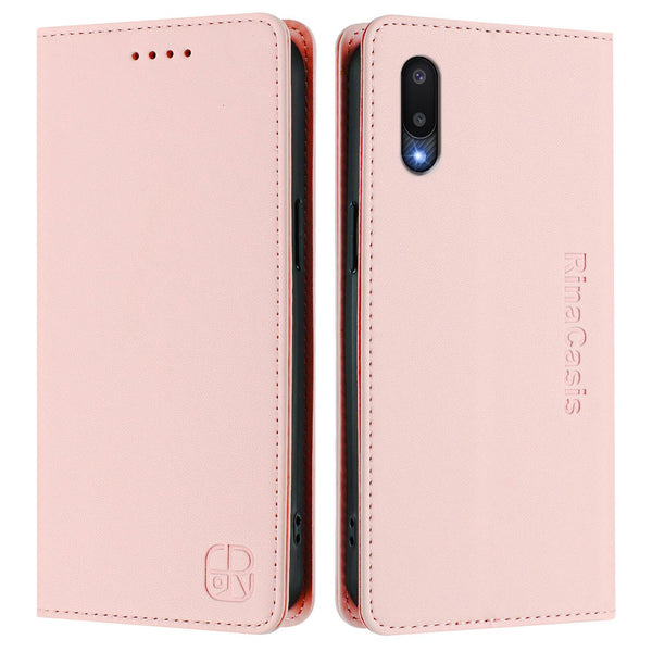 For Samsung Galaxy A02 / M02 RC01 Dual-Folded Magnetic Suction RFID Leather Phone Case(Pink)