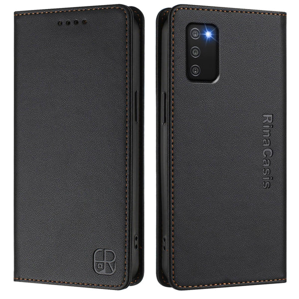 For Samsung Galaxy A03s US 165.8mm RC01 Dual-Folded Magnetic Suction RFID Leather Phone Case(Black)