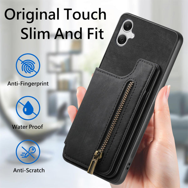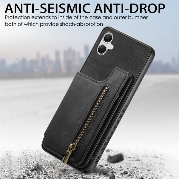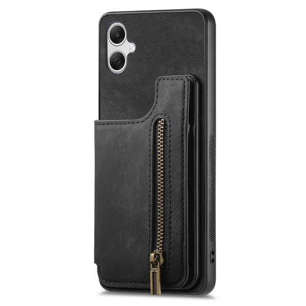 For Samsung Galaxy A04 4G Retro Leather Zipper Wallet Back Phone Case(Black)