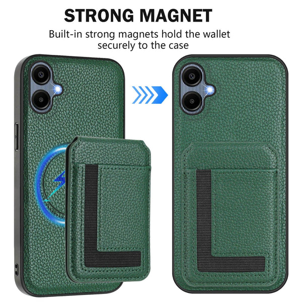 For Samsung Galaxy A04 CX01 Detachable Magsafe Magnetic Card Bag Phone Case(Peacock Green)