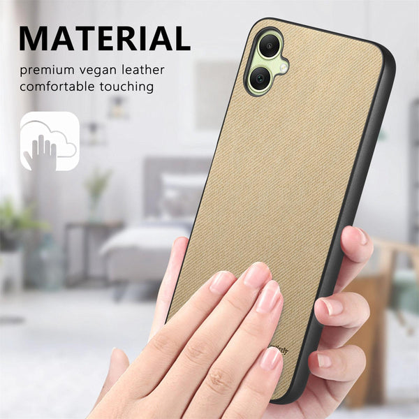 For Samsung Galaxy A04e / F04 / M04 Twill Fabric Leather Skin Back Phone Case(Khaki)