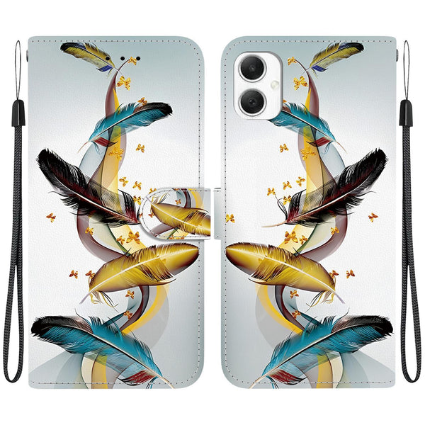 For Samsung Galaxy A05 Crystal Texture Colored Drawing Leather Phone Case(Gold Butterfly Feathers)