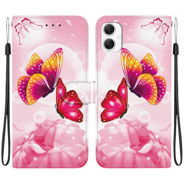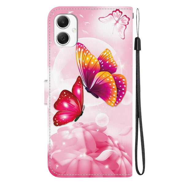 For Samsung Galaxy A05 Crystal Texture Colored Drawing Leather Phone Case(Pink Butterflies)