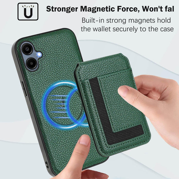 For Samsung Galaxy A05 CX01 Detachable Magsafe Magnetic Card Bag Phone Case(Peacock Green)