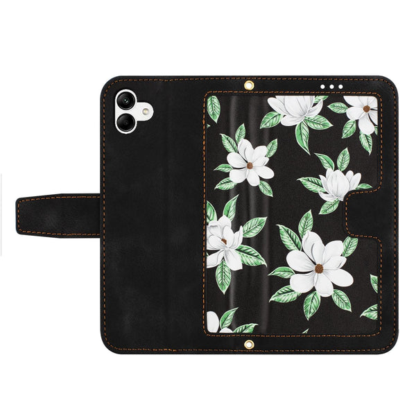 For Samsung Galaxy A05 Floral Pattern Leather Phone Case with Lanyard(Black)