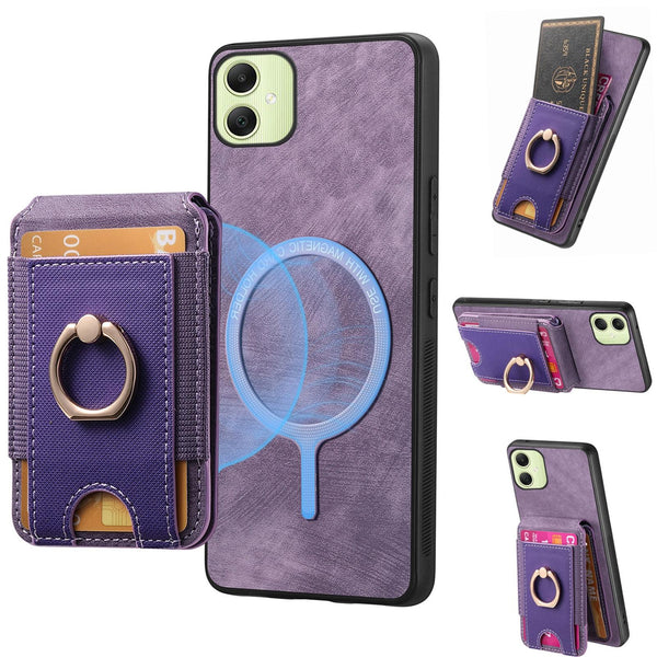 For Samsung Galaxy A05 Retro Splitable Magnetic Stand Card Bag Leather Phone Case(Purple)