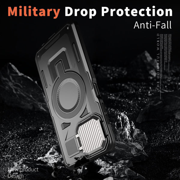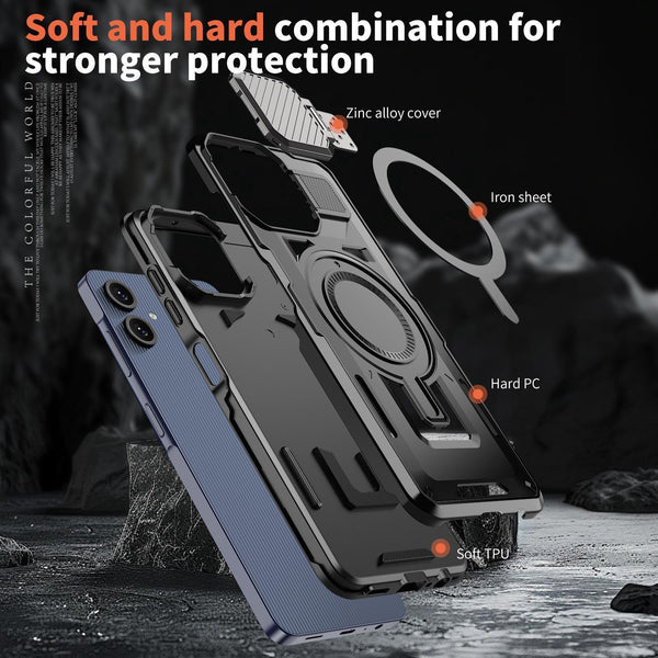 For Samsung Galaxy A05 Shield Frame Holder MagSafe Phone Case(Black)