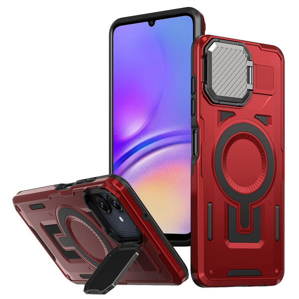 For Samsung Galaxy A05 Shield Frame Holder MagSafe Phone Case(Red)
