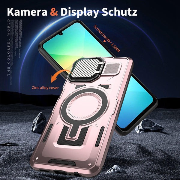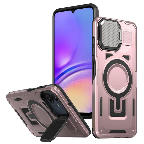 For Samsung Galaxy A05 Shield Frame Holder MagSafe Phone Case(Rose Gold)