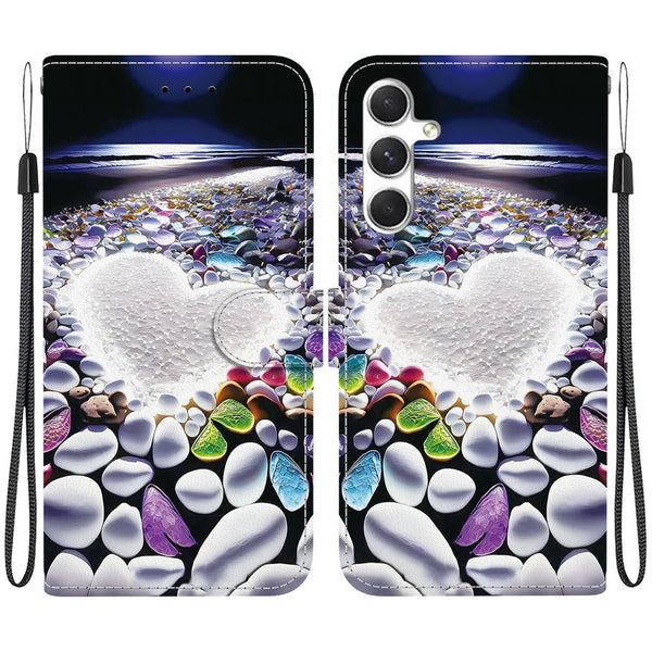 For Samsung Galaxy A05s Crystal Texture Colored Drawing Leather Phone Case(Heart Shaped)