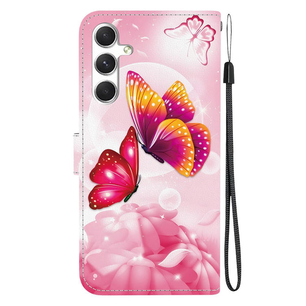 For Samsung Galaxy A05s Crystal Texture Colored Drawing Leather Phone Case(Pink Butterflies)