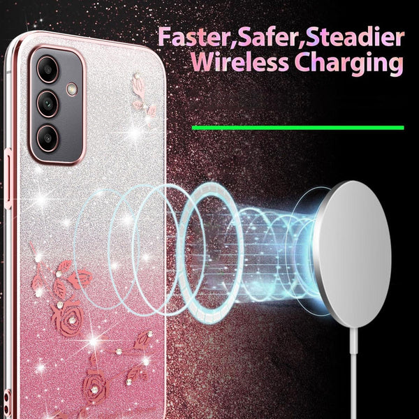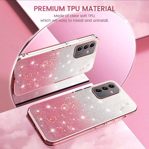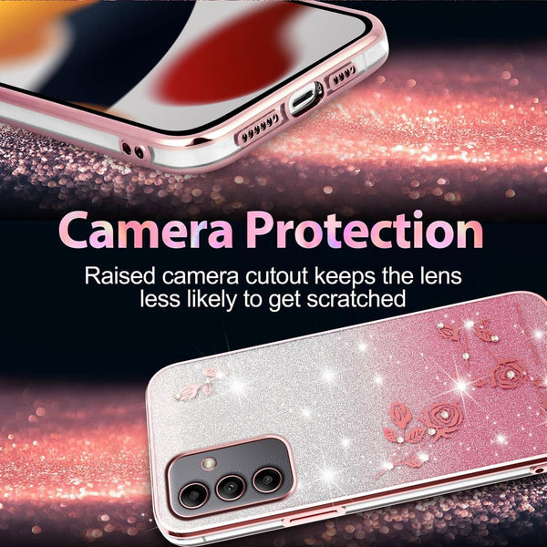 For Samsung Galaxy A05s Gradient Glitter Flower All-inclusive Phone Case(Pink)
