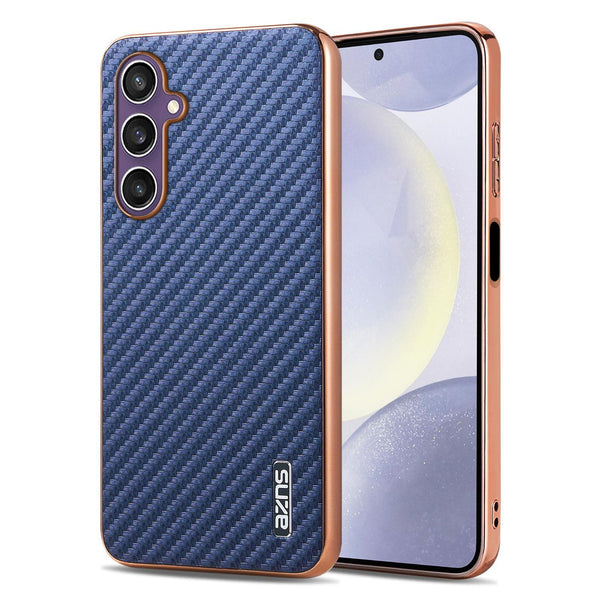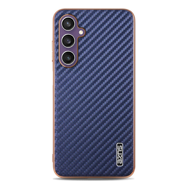For Samsung Galaxy A05s / M14 AZNS Electroplated Edge Carbon Fiber Texture Phone Case(Blue)