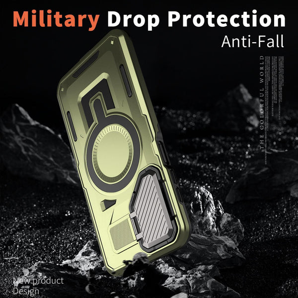 For Samsung Galaxy A05s Shield Frame Holder MagSafe Phone Case(Olive Green)
