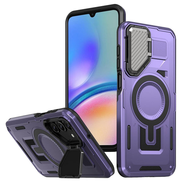 For Samsung Galaxy A05s Shield Frame Holder MagSafe Phone Case(Purple)