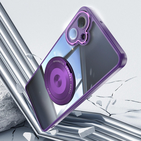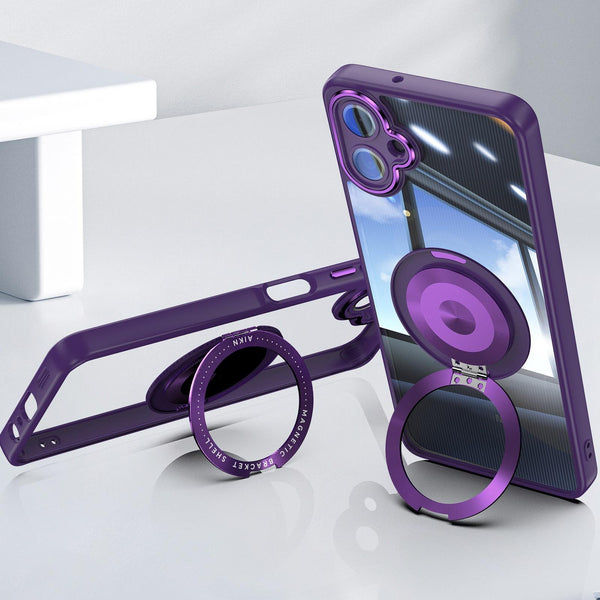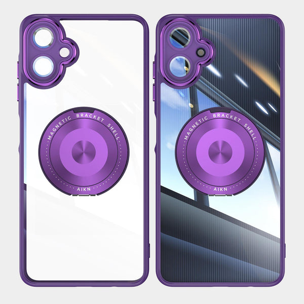 For Samsung Galaxy A06 4G 360 Holder MagSafe Acrylic Hybrid TPU Phone Case(Purple)