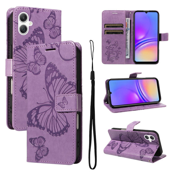 For Samsung Galaxy A06 4G / 5G 3D Butterfly Embossed Pattern Flip Leather Phone Case(Purple)