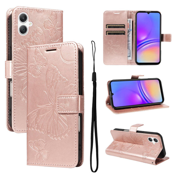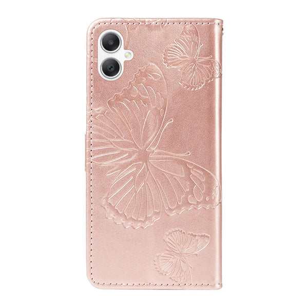 For Samsung Galaxy A06 4G / 5G 3D Butterfly Embossed Pattern Flip Leather Phone Case(Rose Gold)