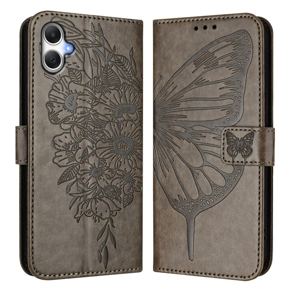 For Samsung Galaxy A06 4G / 5G Embossed Butterfly Leather Phone Case(Grey)
