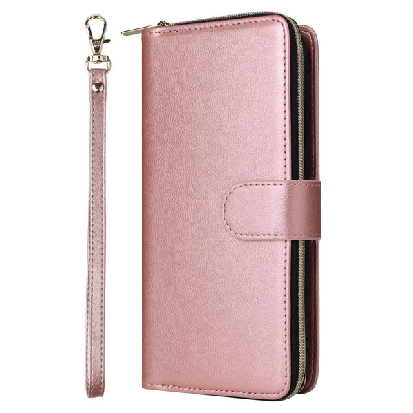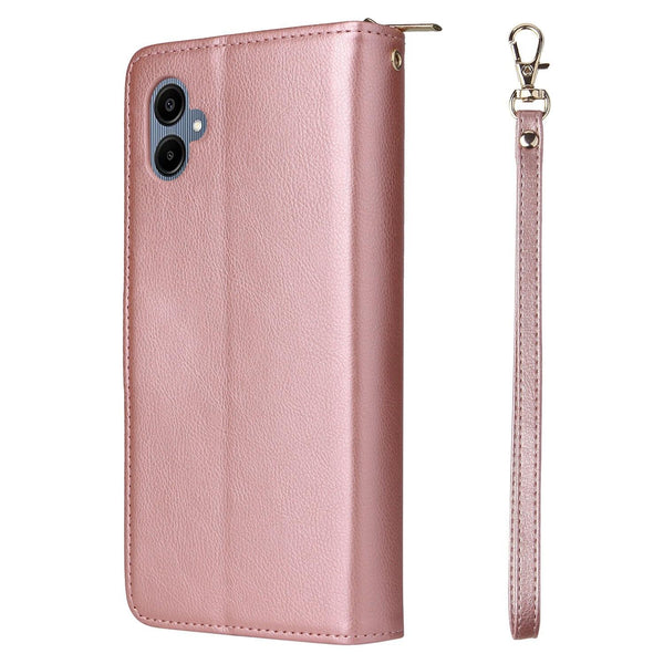 For Samsung Galaxy A06 4G 9-Card Slots Zipper Wallet Bag Leather Phone Case(Rose Gold)