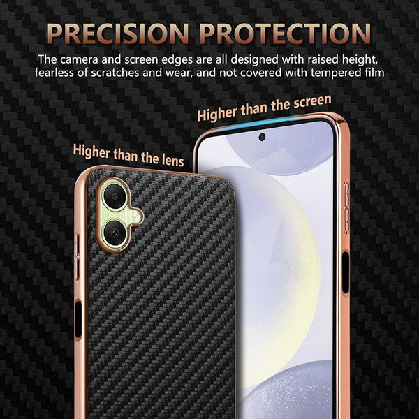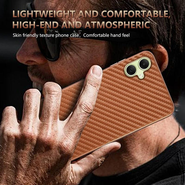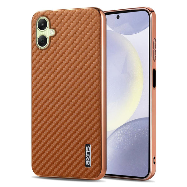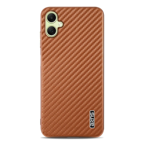 For Samsung Galaxy A06 4G AZNS Electroplated Edge Carbon Fiber Texture Phone Case(Brown)