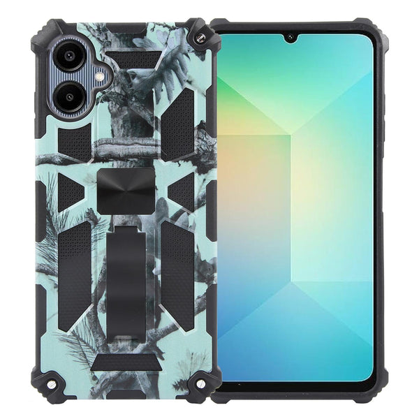 For Samsung Galaxy A06 4G Camouflage Armor Kickstand TPU Hybrid PC Magnetic Phone Case(Mint Green)