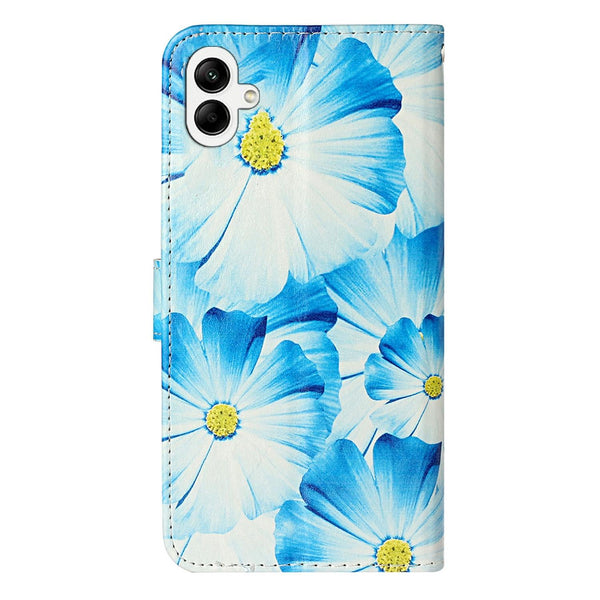 For Samsung Galaxy A06 4G Colored Drawing Marble Pattern Leather Phone Case(Blue Flower)