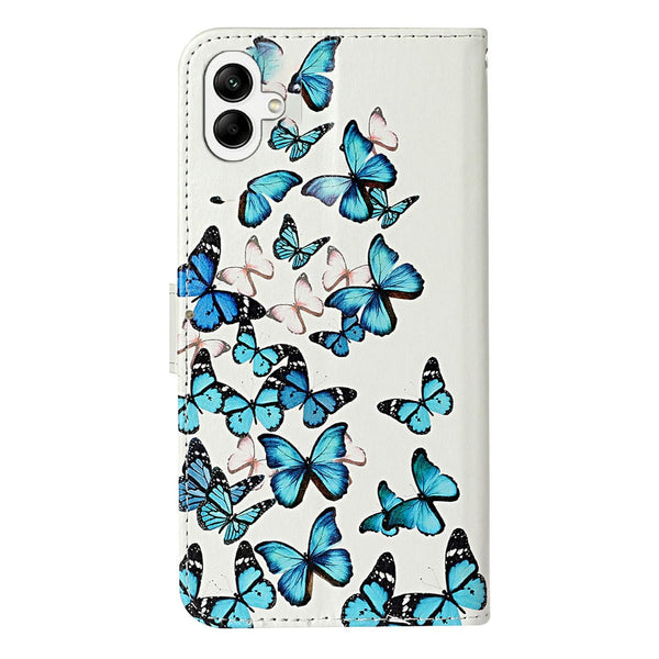 For Samsung Galaxy A06 4G Colored Drawing Marble Pattern Leather Phone Case(Little Blue Butterflies)