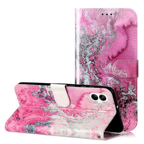 For Samsung Galaxy A06 4G Colored Drawing Marble Pattern Leather Phone Case(Pink Seawater)