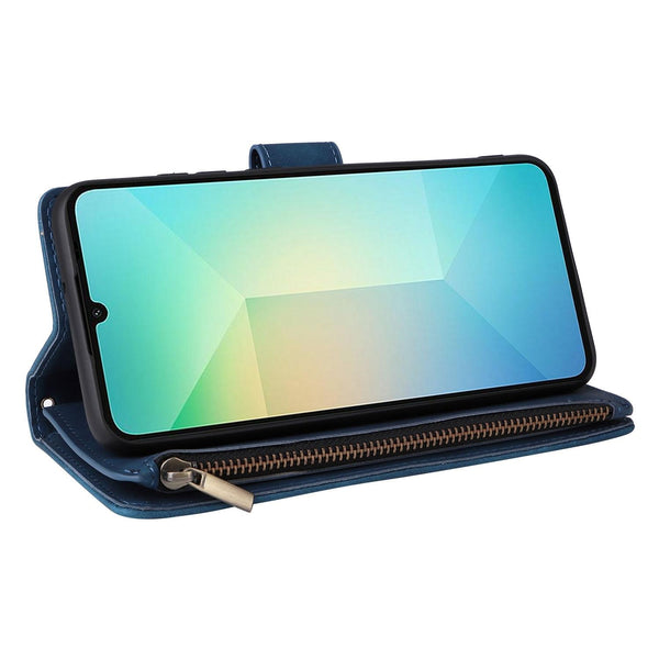 For Samsung Galaxy A06 4G Multifunctional Frosted Zipper Wallet Leather Phone Case(Blue)