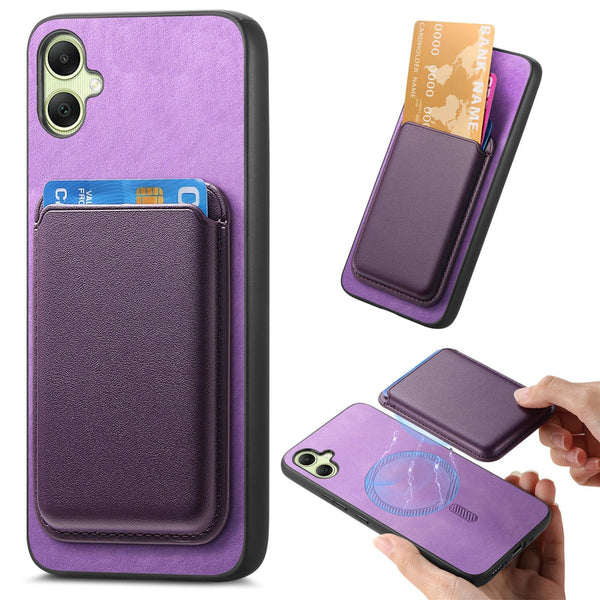 For Samsung Galaxy A06 4G Retro Magsafe Card Bag PU Back Cover Phone Case(Purple)