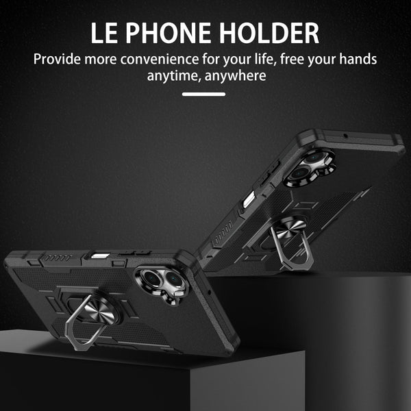 For Samsung Galaxy A06 4G Ring Holder Armor Hybrid Phone Case(Black)