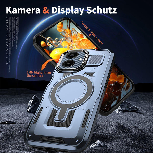 For Samsung Galaxy A06 4G Shield Hollow Frame Holder MagSafe Phone Case(Navy Blue)