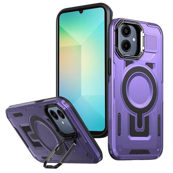 For Samsung Galaxy A06 4G Shield Hollow Frame Holder MagSafe Phone Case(Purple)