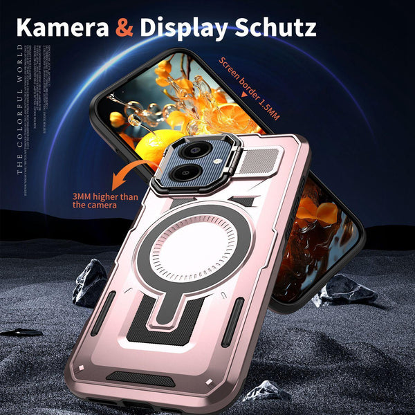 For Samsung Galaxy A06 4G Shield Hollow Frame Holder MagSafe Phone Case(Rose Gold)