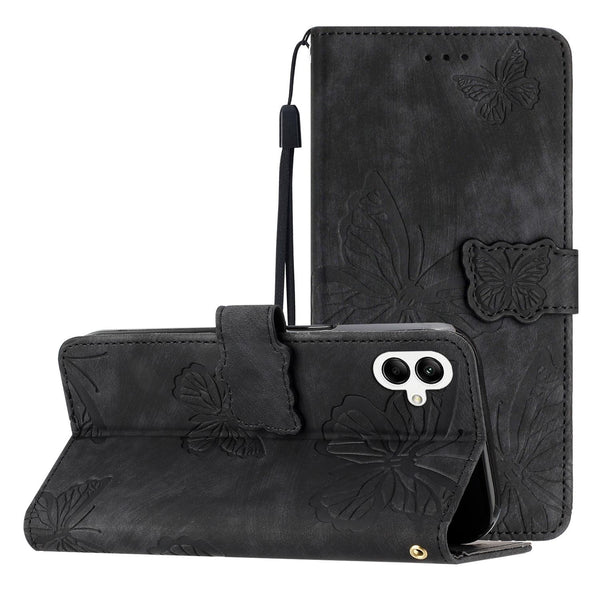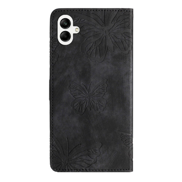 For Samsung Galaxy A06 4G Skin-feel Embossed Butterfly Leather Phone Case(Black)