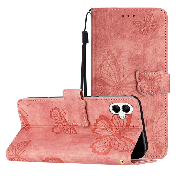 For Samsung Galaxy A06 4G Skin-feel Embossed Butterfly Leather Phone Case(Pink)