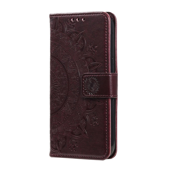 For Samsung Galaxy A06 5G / 4G Totem Flower Embossed Leather Phone Case with Lanyard(Brown)