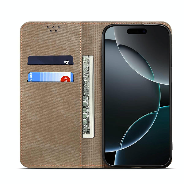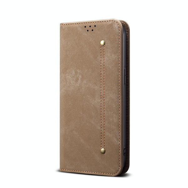 For Samsung Galaxy A06 5G Denim Texture Casual Style Horizontal Flip Leather Case(Khaki)